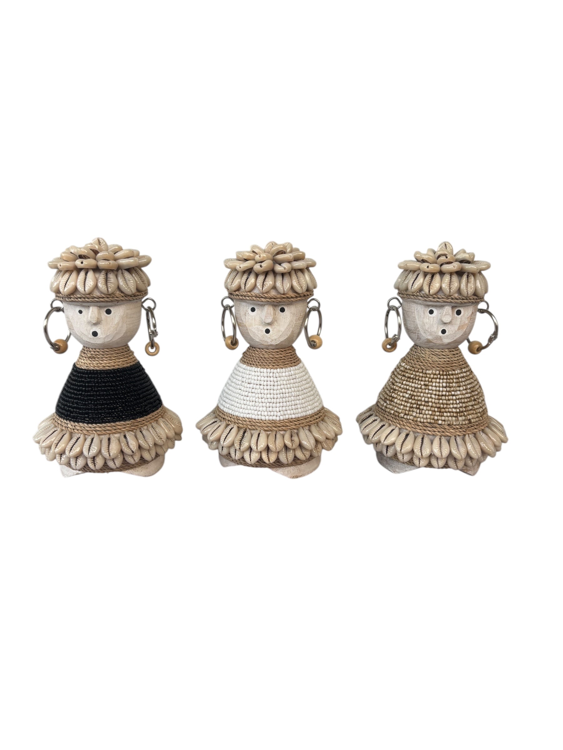 In the Ndjami culture of Cameroon, blacksmiths create basic dolls for young girls to enjoy. These dolls are highly valued as companions, but when adorned with beads, shells, coins, and trinkets they transform into fertility dolls - cherished and nurtured as if they were real children.